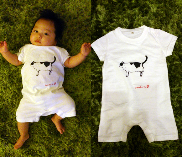 私はとりあえず、飼い猫の紋助を描いて、ベビー服にしてみました。